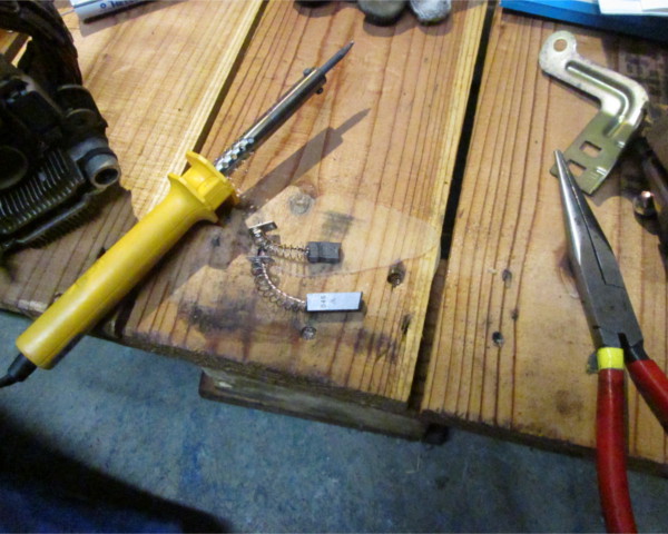 これではシャフト組み込み不可能なので1mmドリルでカーボンブラシに穴を開ける・・・