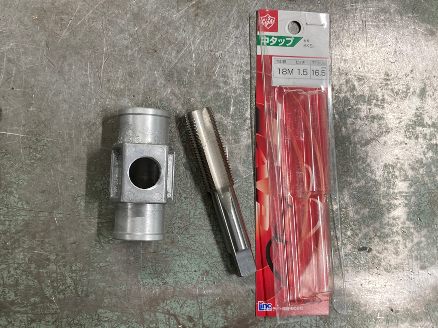 水温センサのネジピッチがM18 P1.5のためJURANアタッチメントのPT1/8をタップで開け直す。