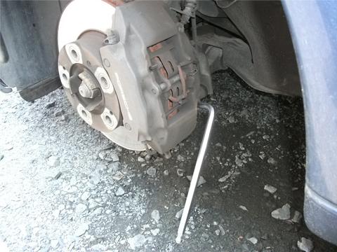 キャリパーは 6角レンチ 8mm 2本だけで外れる。