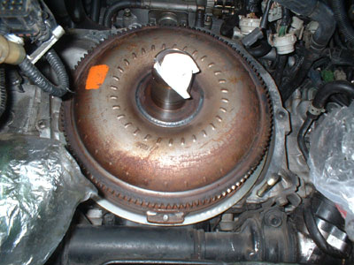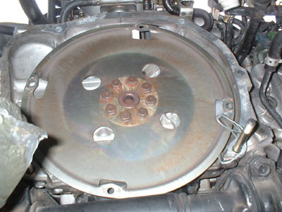 トルコンは外周の4本のボルトで留まっている。
