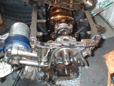 写真左のオイルシールは間違い。オイルポンプ取り付け後だ。