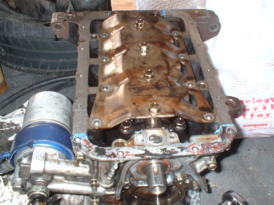 オイルパンバッフルプレートを組み付ける。