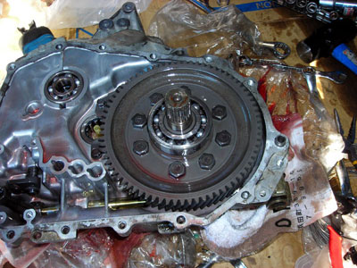 ボルト5本を外して、ベアリングリテーナープレートを外す。