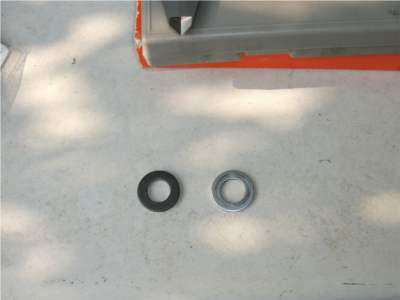 左側は対策品のハイテンションワッシャー。ホームセンターで買ってきた。16×23だったかな?