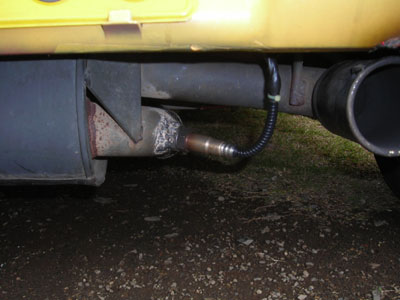 センサーが高熱に弱いので、マフラーの後ろ側に取り付ける。